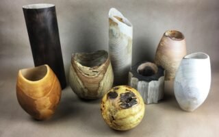 VASE: PRUNUS SPINOSA, base legno di abete bruciato, foglia di rame ossidata, chiodi e filo di rame